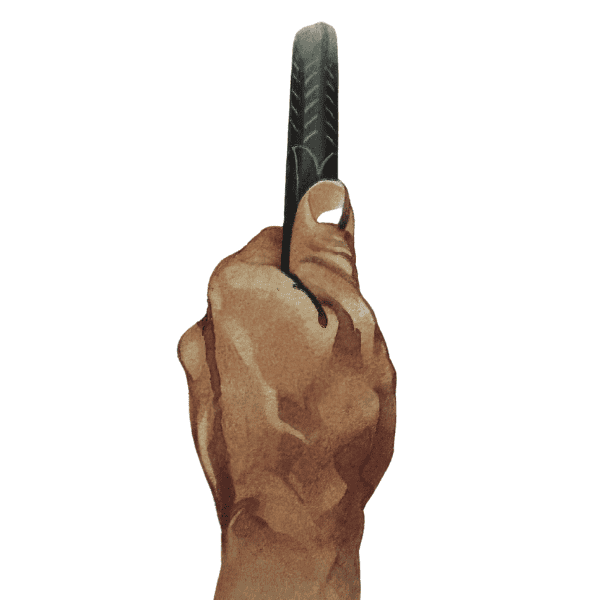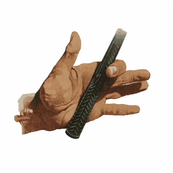 Step #1: Begin with your left hand (lefties do the opposite). Grip the club in your palm. It should run diagonally across from the pad at the base of the palm to the index finger. This provides a healthy balance between fingers and palms. If you’re properly gripping the golf club, your index finger will create a slight trigger effect like the image below.